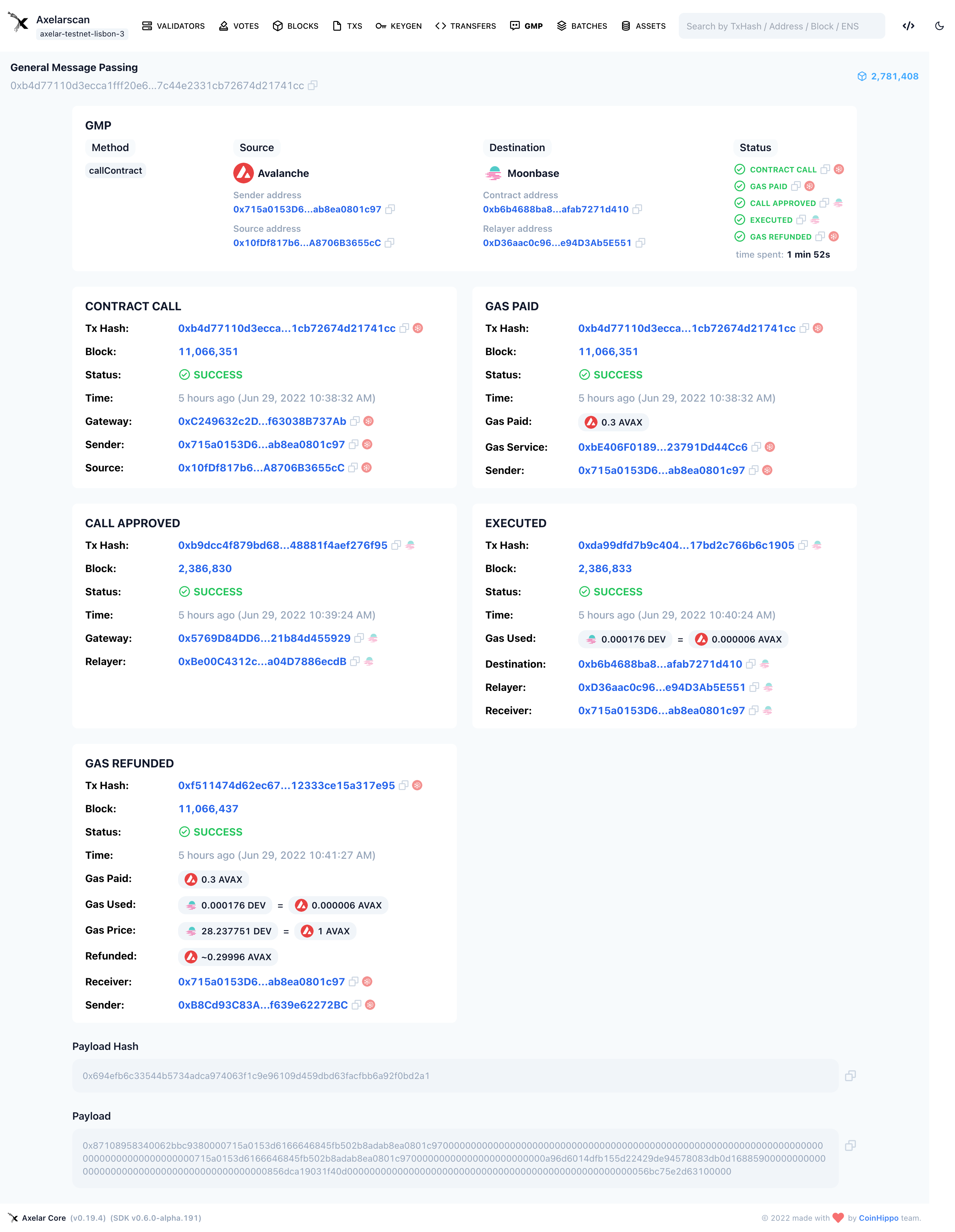 • GAS PAID displays the information of gas prepaid to Axelar Gas Receiver contract.